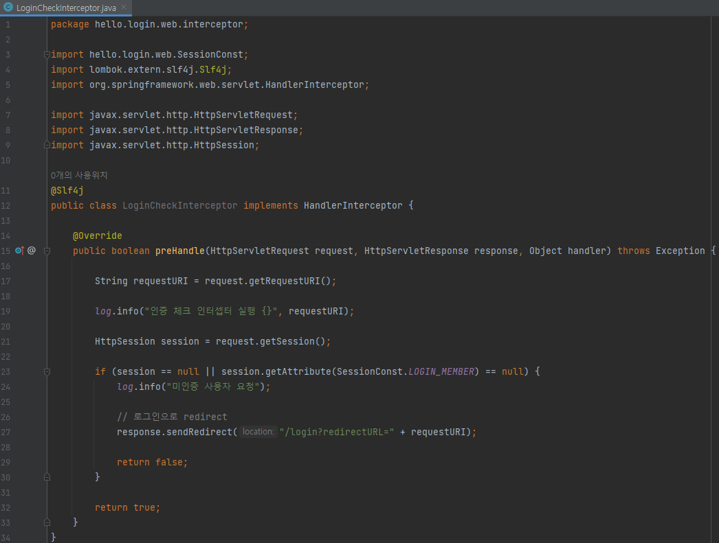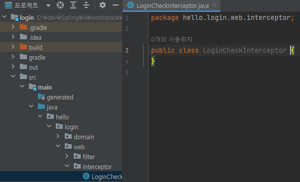 main/java/hello/login/web/interceptor/LoginInterceptor 생성
