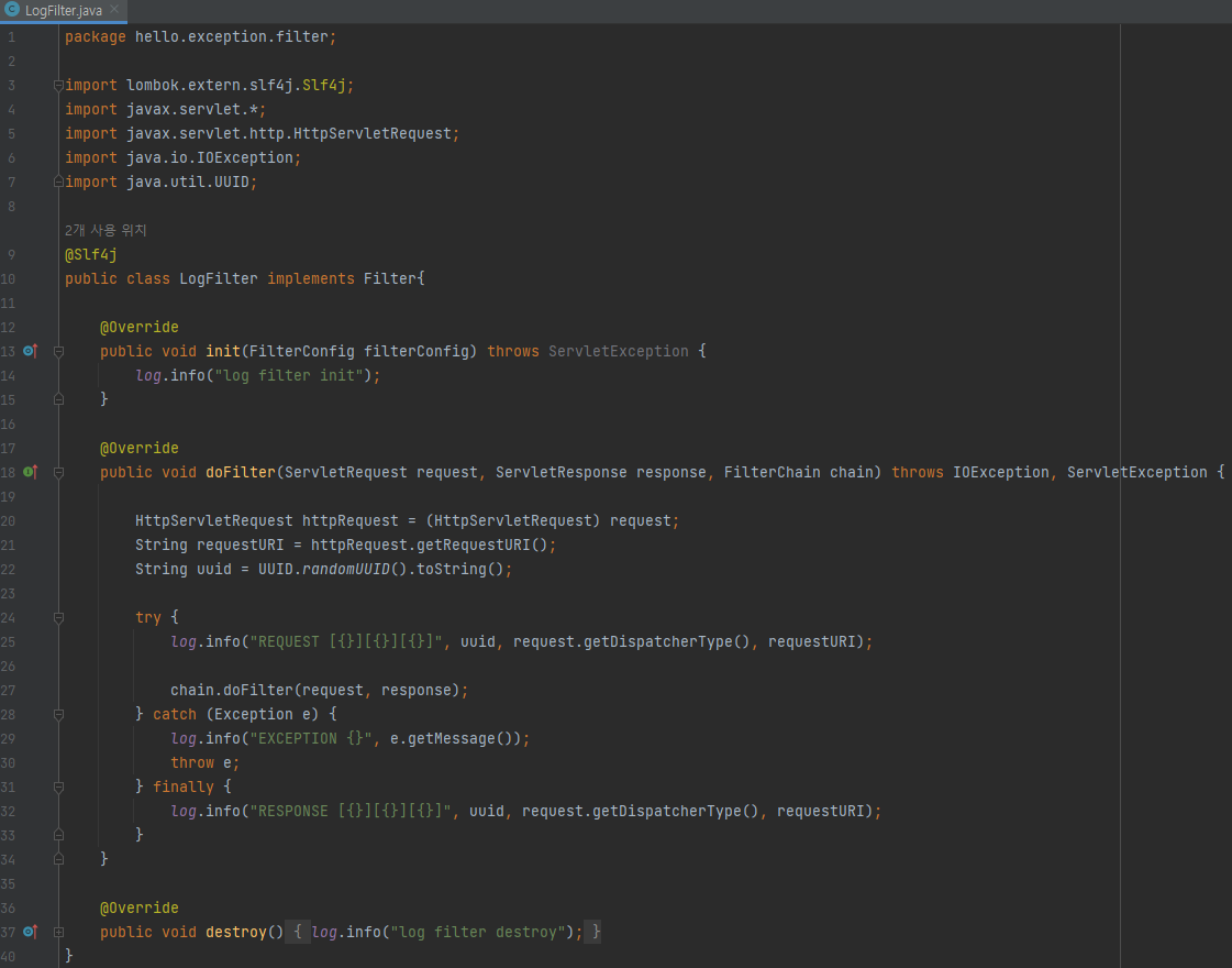 main/java/hello/exception/filter/LogFilter 생성