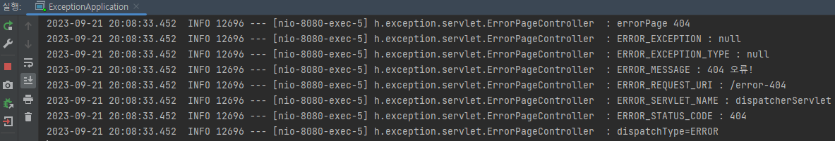 그리고 출력해보면 오류 페이지에서 dispatchType=ERROR로 나오는 것을 확인할 수 있다.