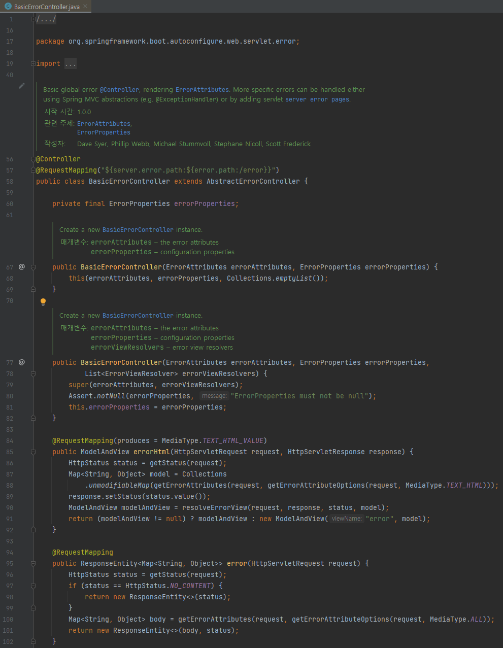 BasicErrorController 코드
