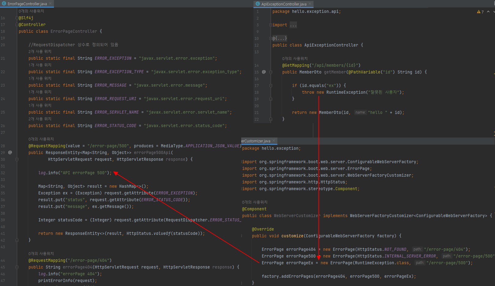 BasicErrorController를 사용하도록 WebServerCustomizer의 @Component를 주석처리 하자.