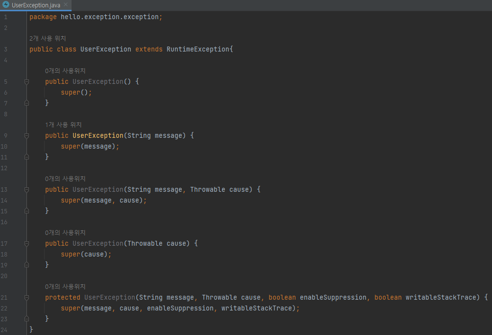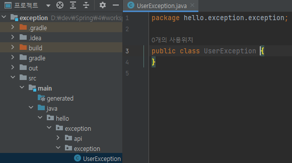 main/java/hello/exception/exception/UserException 생성