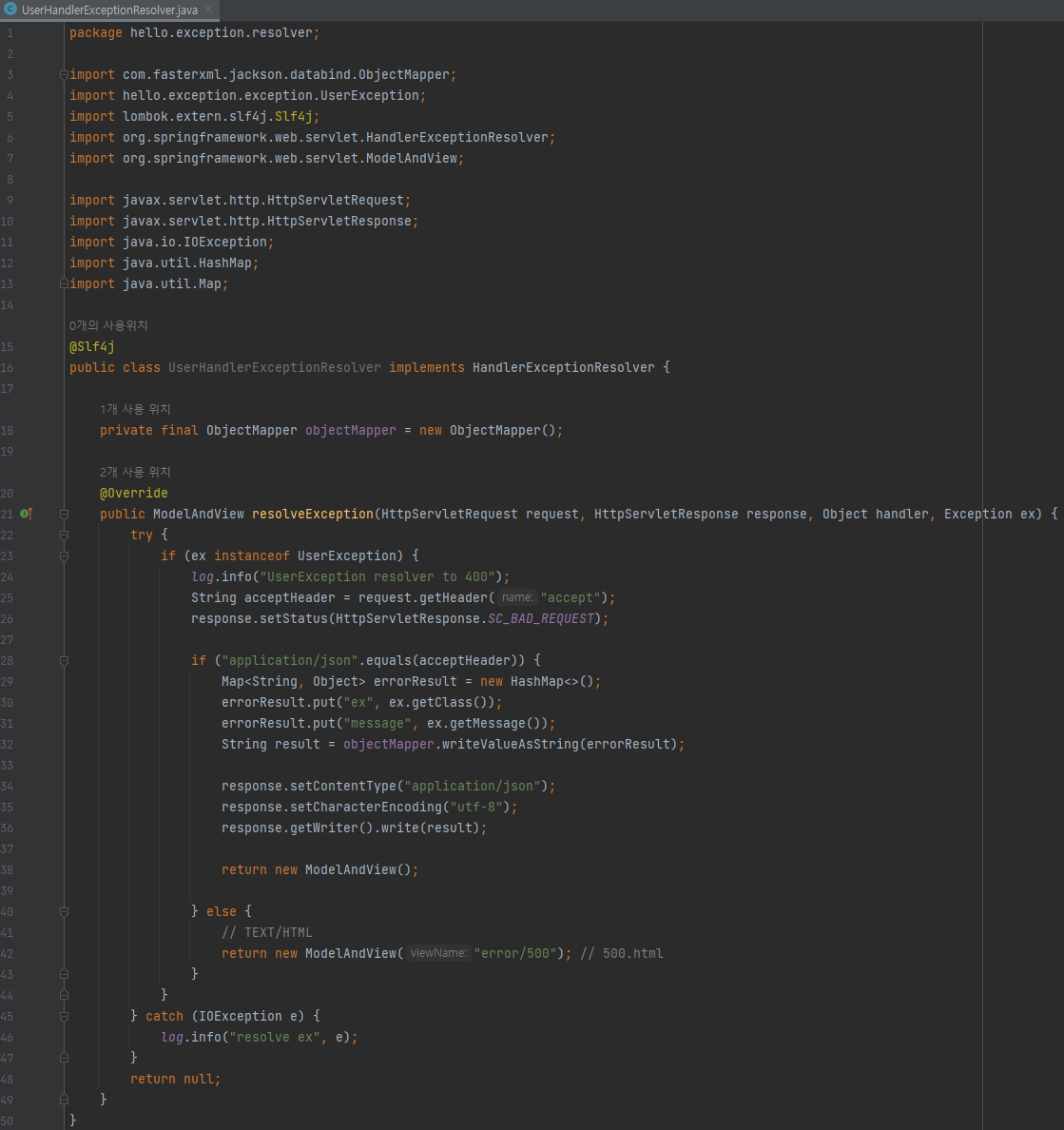 main/java/hello/exception/resolver/UserHandlerExceptionResolver 생성