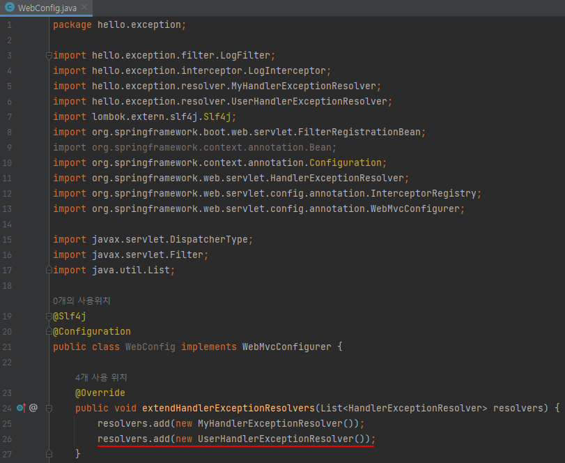 WebConfig에 UserHandlerExceptionResolver 추가