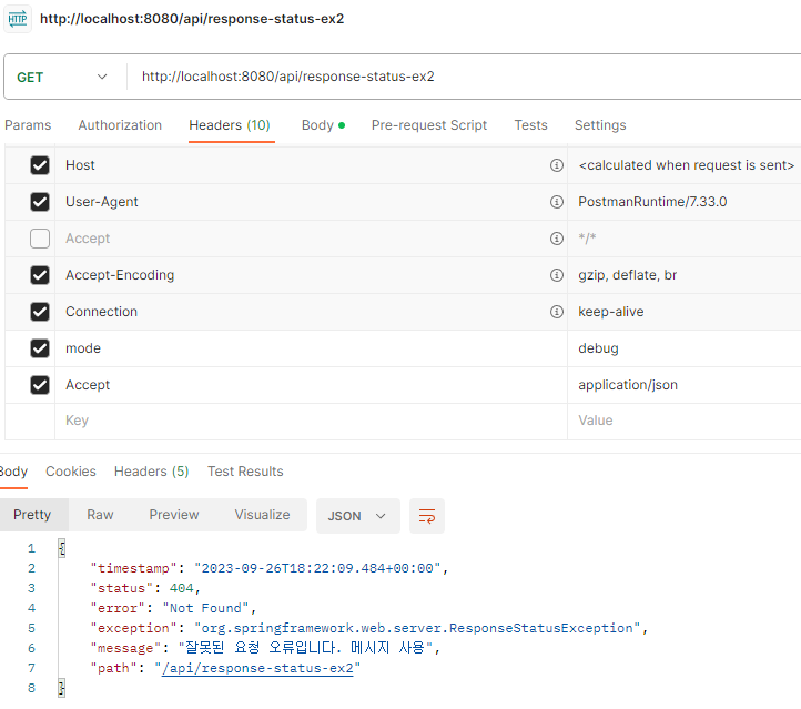 예) @ResponseStatus(value = HttpStatus.NOT_FOUND)