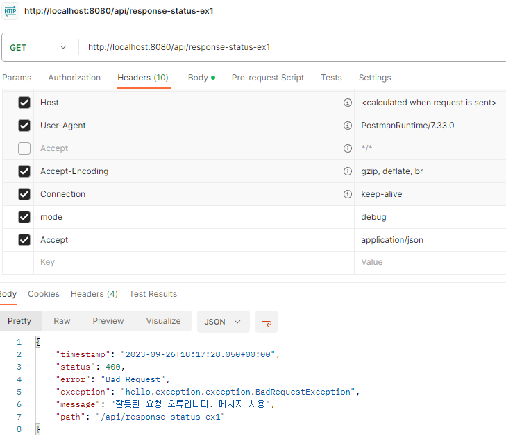 기존 status는 500이지만 400으로 뜸