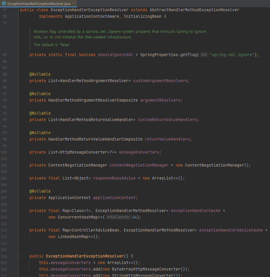 첫번째로 물어보는게 ExceptionHandlerExceptionResolver