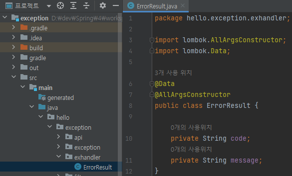 main/java/hello/exception/exhandler/ErrorResult 생성