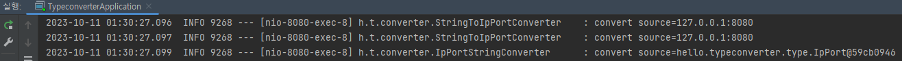실행해 보면 직접 등록한 StringToIntegerConverter가 작동하는 로그를 확인할 수 있다.