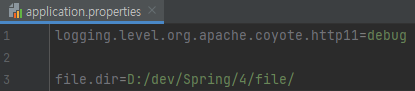 logging.level.org.apache.coyote.http11=debug file.dir=D:/dev/Spring/4/file/