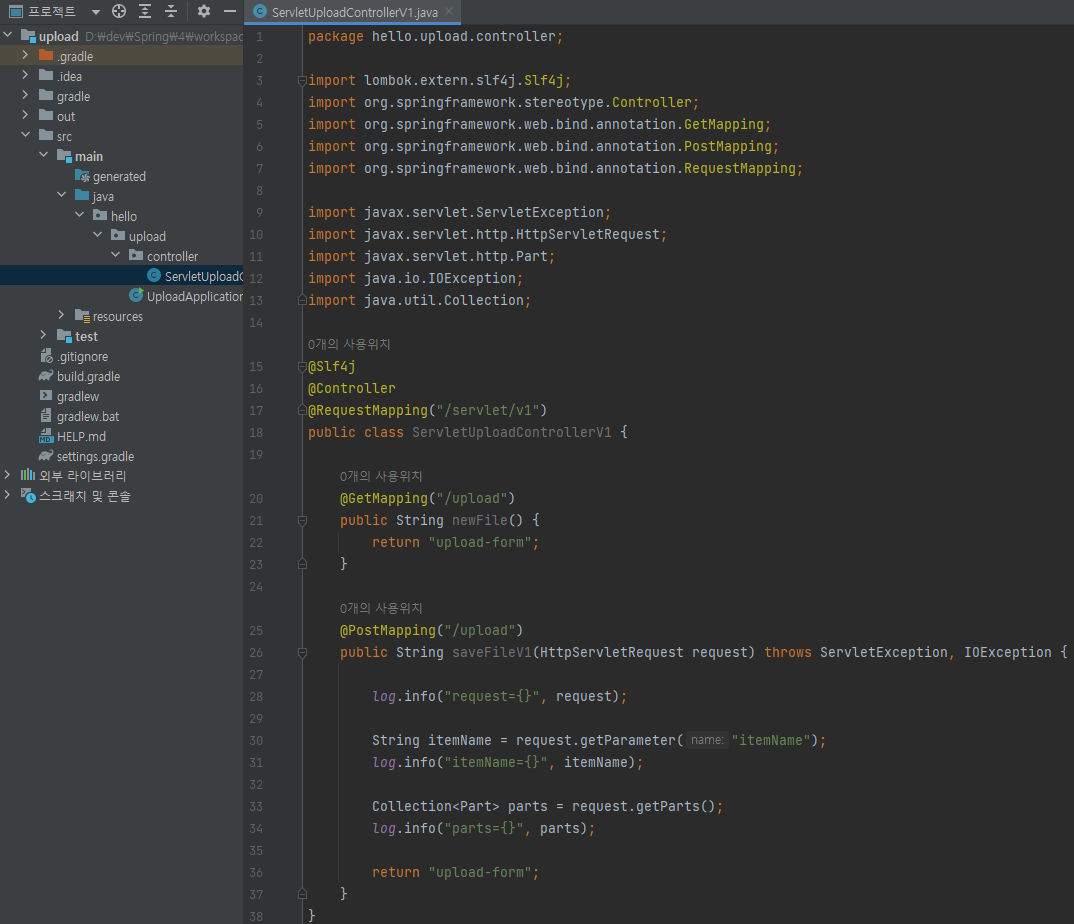 main/java/hello/upload/controller/ServletUploadControllerV1 생성