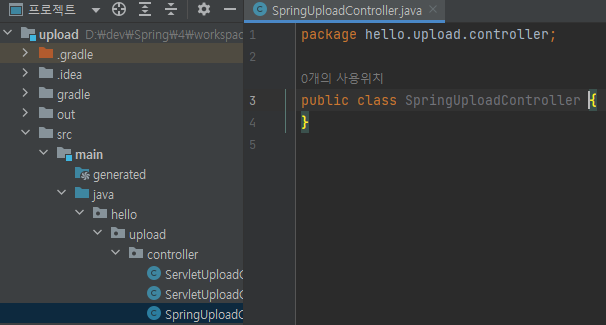main/java/hello/upload/controller/SpringUploadController 생성