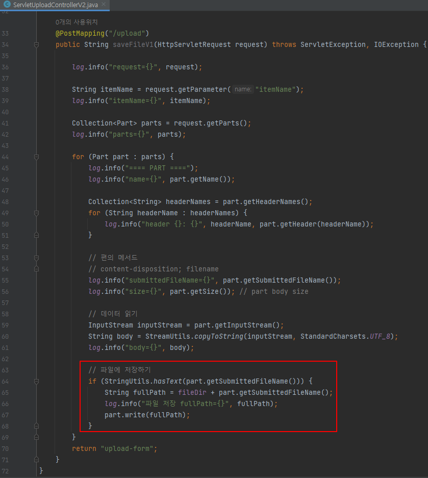 ServletUploadControllerV1을 복붙 후 ServletUploadControllerV2로 변경