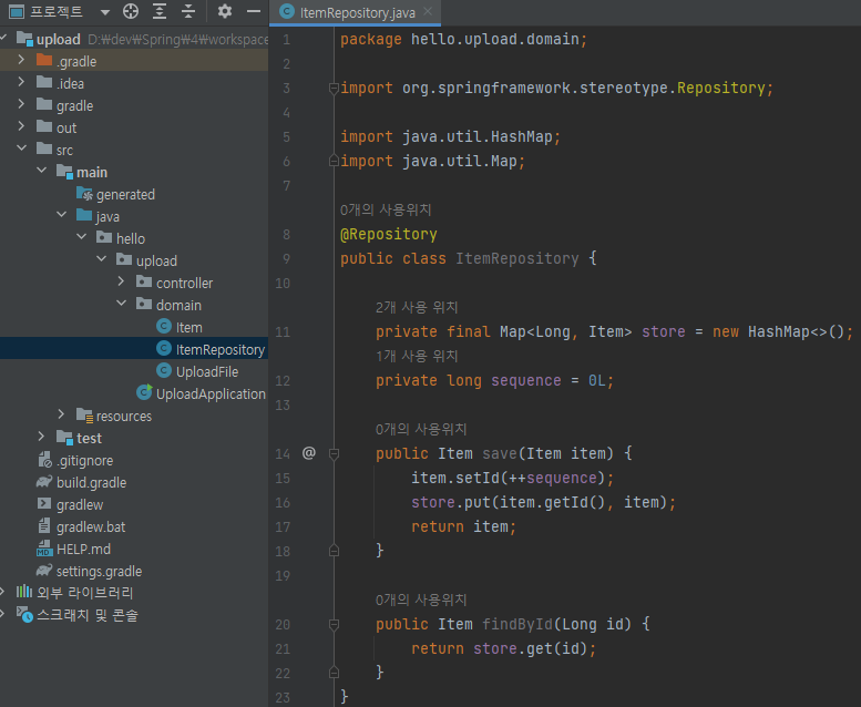 main/java/hello/upload/domain/ItemRepository 생성