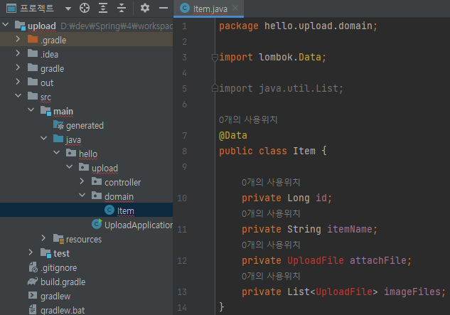 main/java/hello/upload/domain/Item 생성