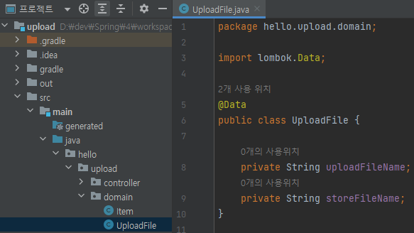 main/java/hello/upload/domain/UploadFile 생성
