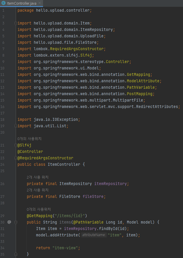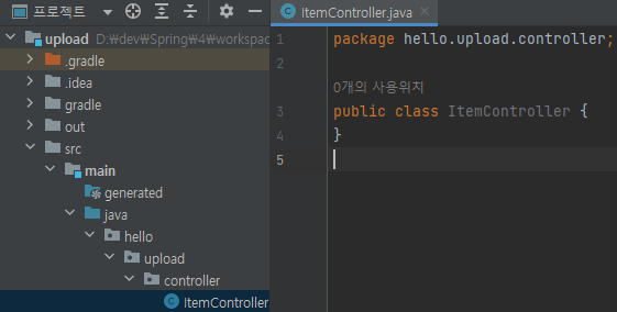 main/java/hello/upload/controller/ItemController 생성