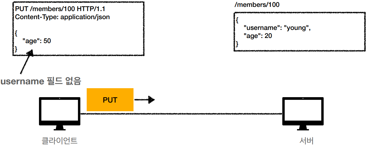 PUT은 리소스를 덮어버리기 때문에 수정하기 어려움 그래서 PATCH를 사용