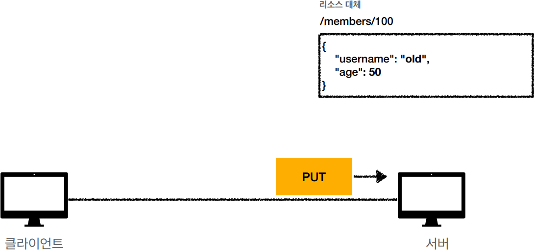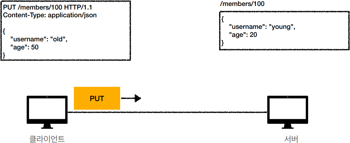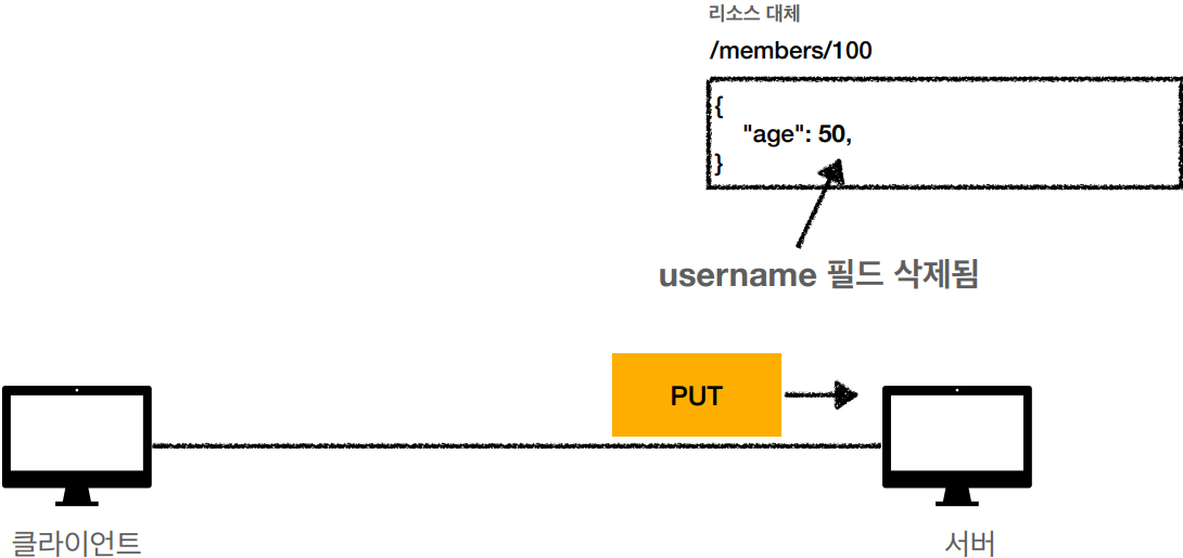 - PUT : 결과를 대체한다. 따라서 같은 요청을 여러번 해도 최종 결과는 같다.