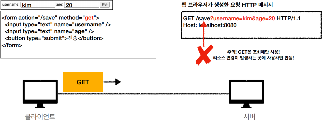 - HTML Form은 GET 전송도 가능