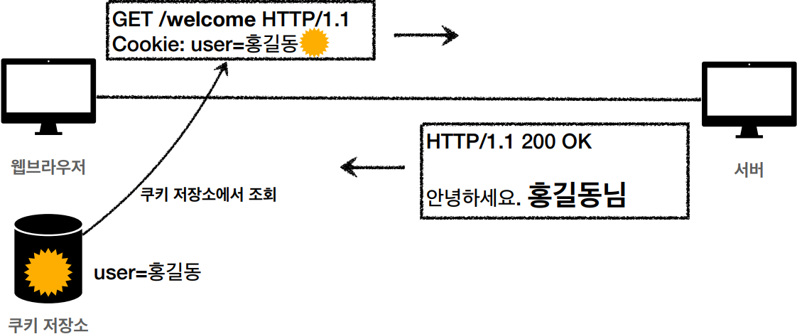 - Cookie : 클라이언트가 서버에서 받은 쿠키를 저장하고, HTTP 요청 시 서버로 전달