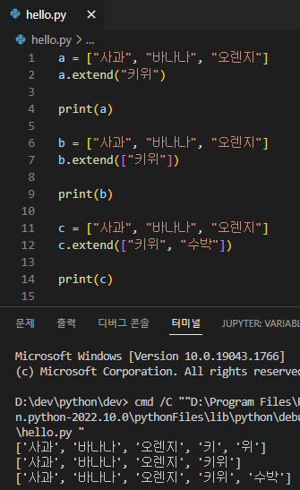 리스트 extendPython/기초 강의 2022. 7. 14. 23:52