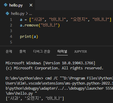 리스트 removePython/기초 강의 2022. 7. 12. 23:46