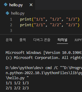 - 해당 print문의 값 사이에 해당 내용을 입력 가능