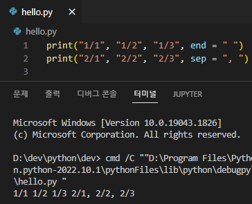 - end를 사용한 print문과 다음 print문 사이에 해당 내용을 입력 가능