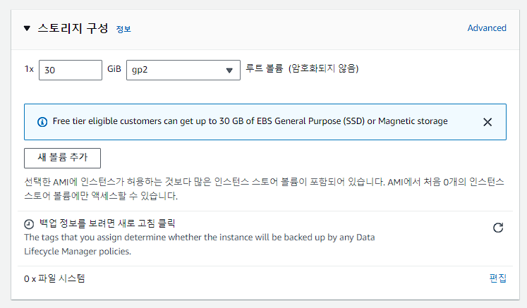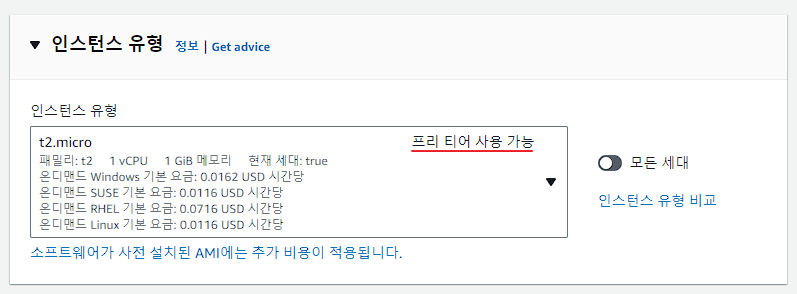 '프리 티어 사용 가능'이 t2.micro라서 선택