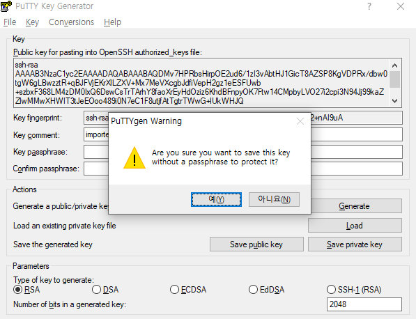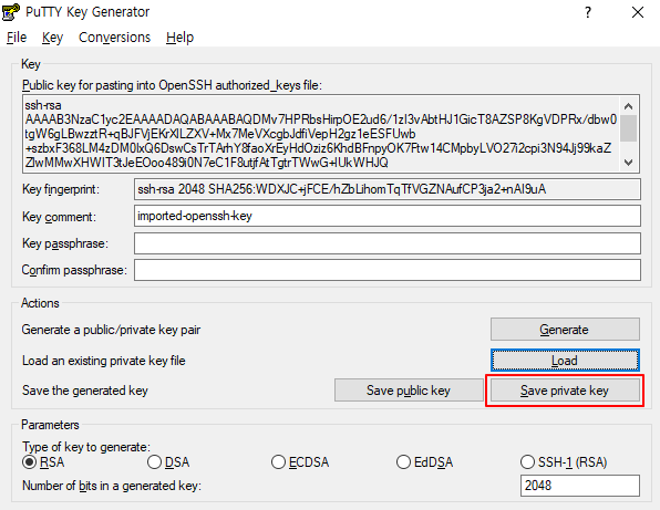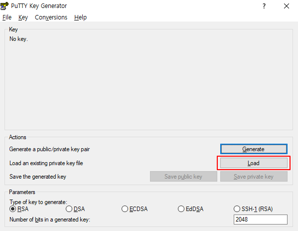 Load를 눌러 5번에서 만든 .pem파일 선택