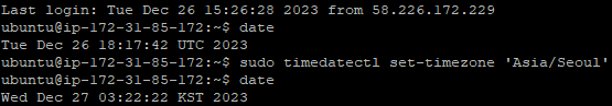 sudo timedatectl set-timezone 'Asia/Seoul'