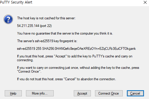 사용자 이름을 'ubuntu'로 해서 연결