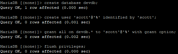 grant all on devdb.* to 'scott'@'%' with grant option;