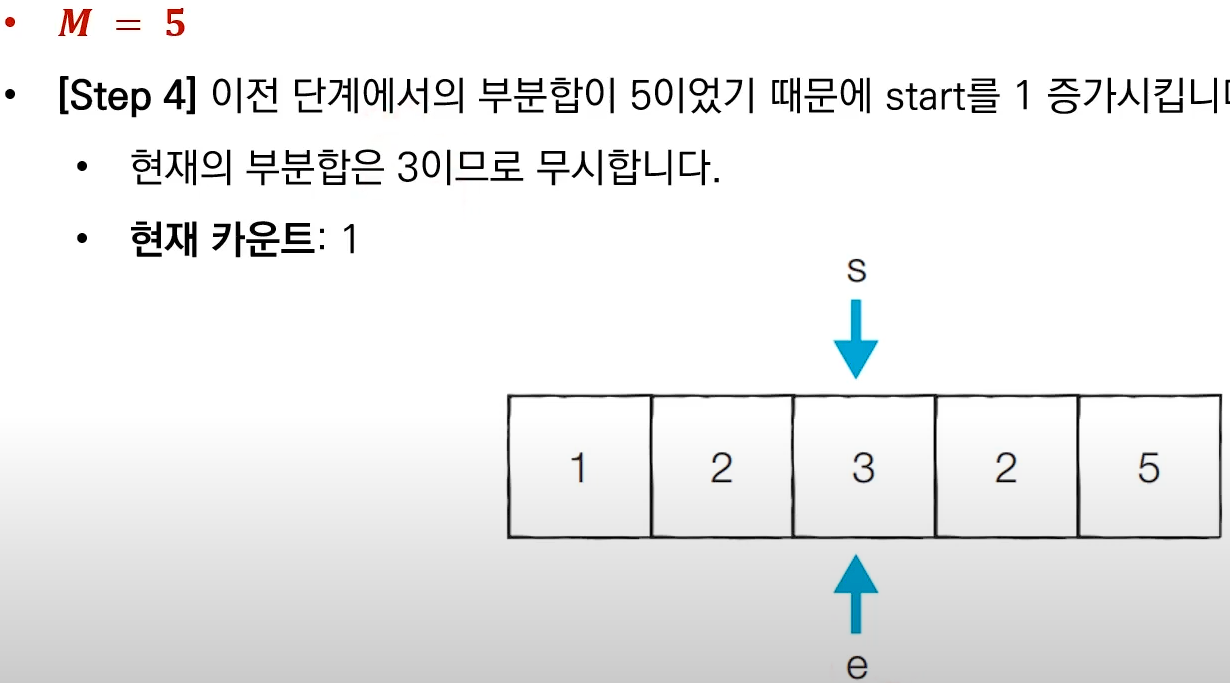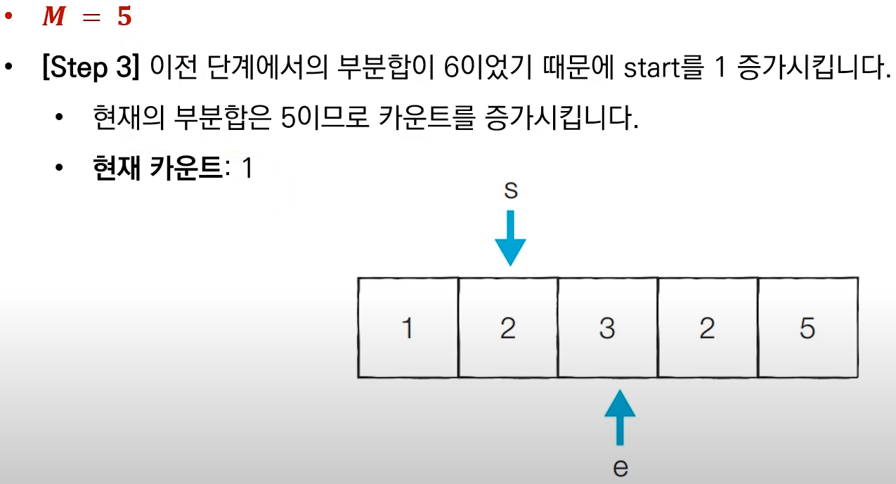 # 현재 부분합 >= 찾고자 하는 부분합 : start 증가