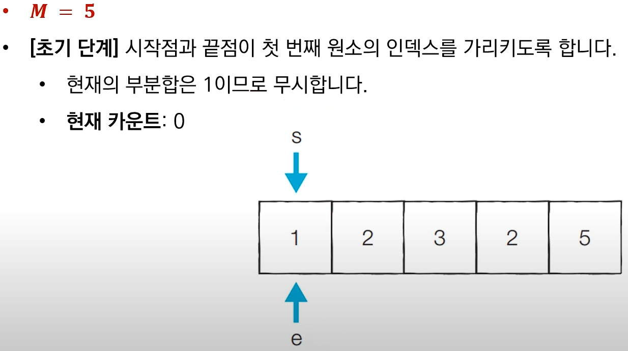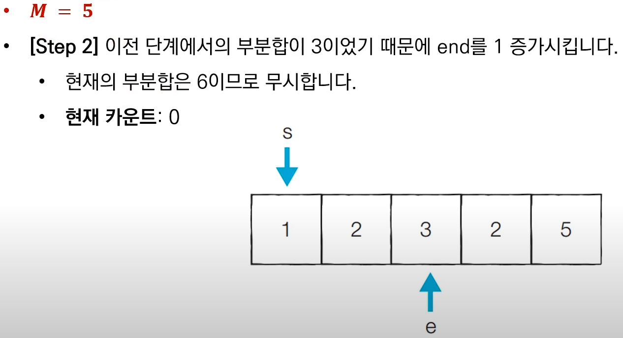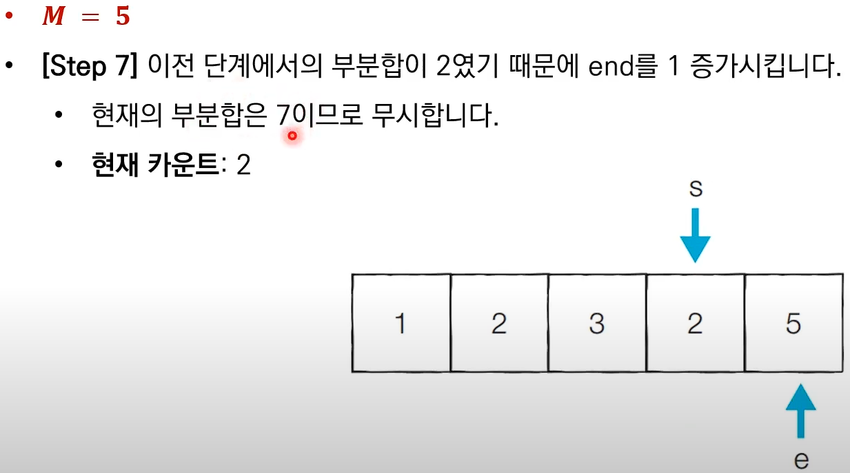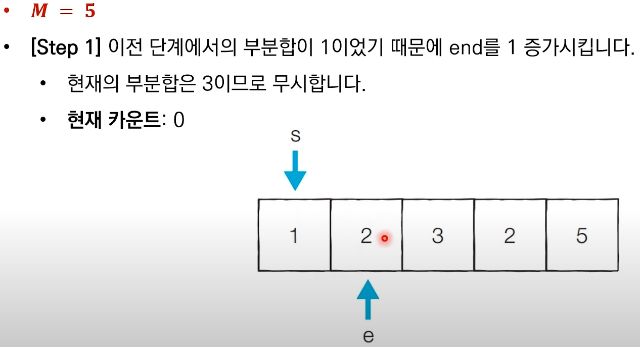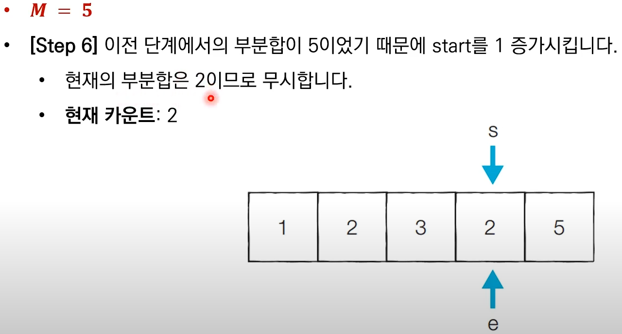 # 현재 부분합 < 찾고자 하는 부분합 : end 증가