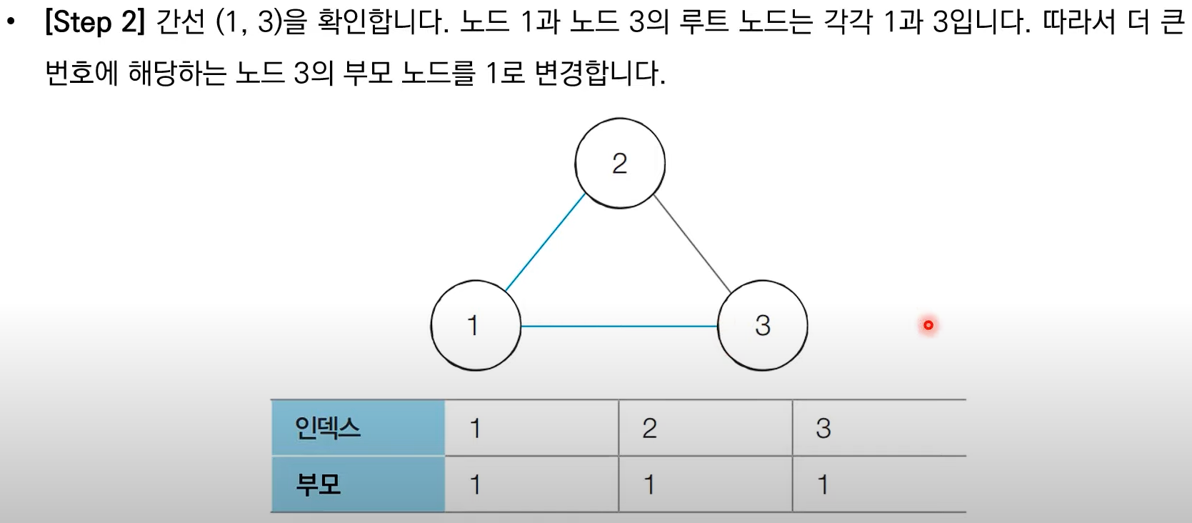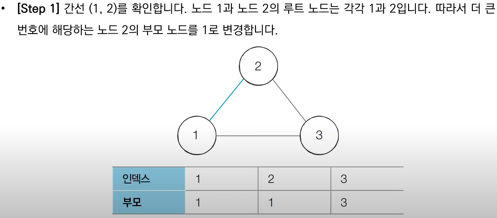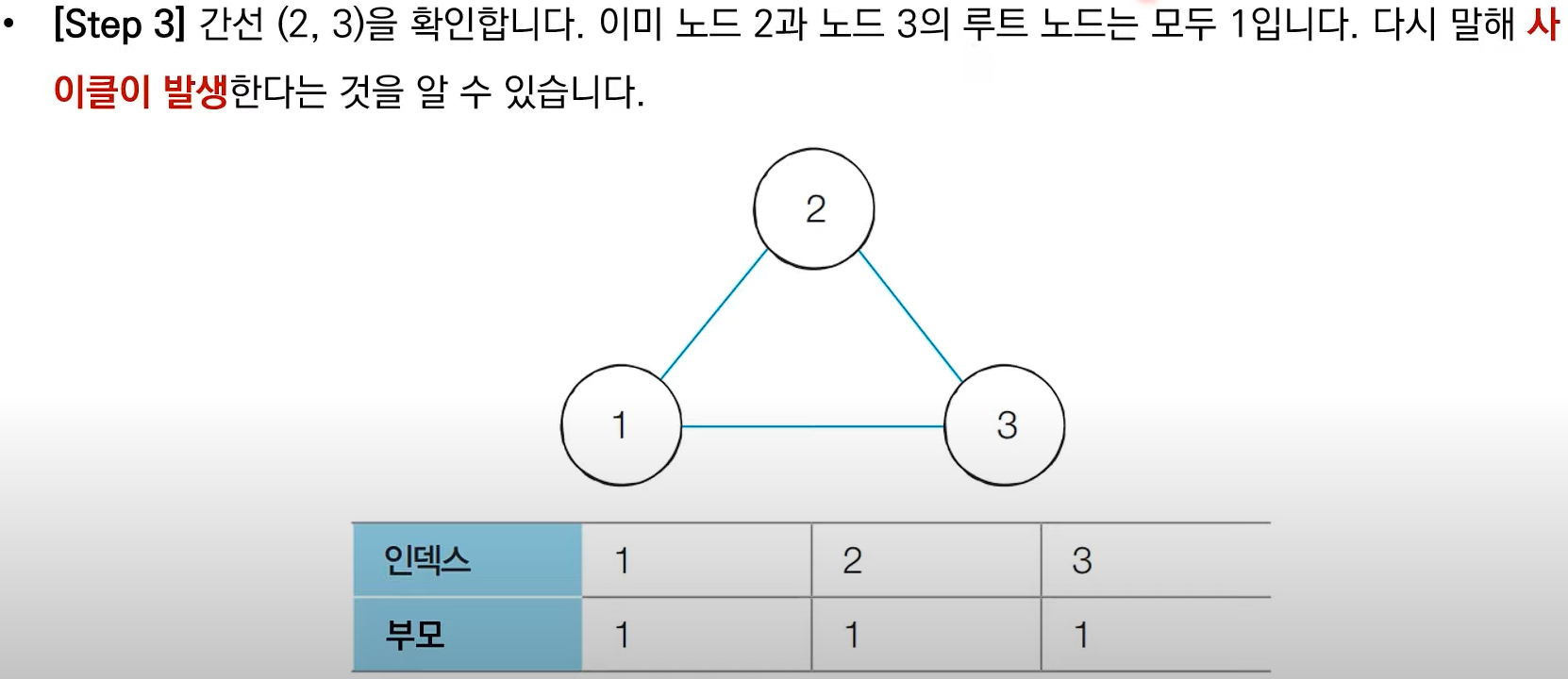 # 사이클이 발생하지 않았다면 합집합(Union) 연산 수행