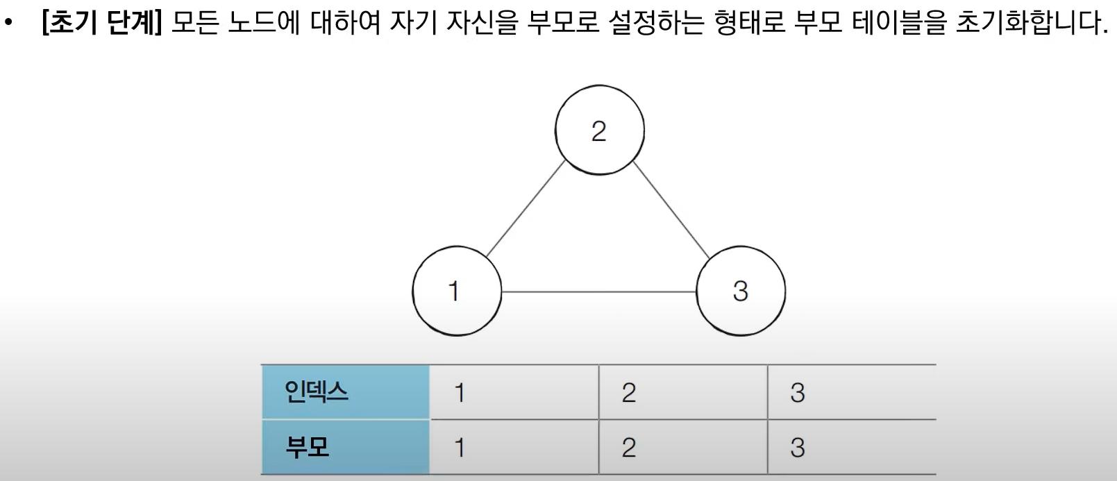 # 사이클이 발생하지 않았다면 합집합(Union) 연산 수행