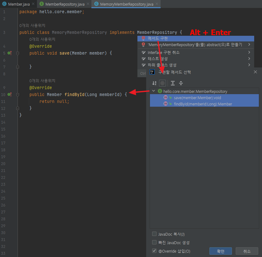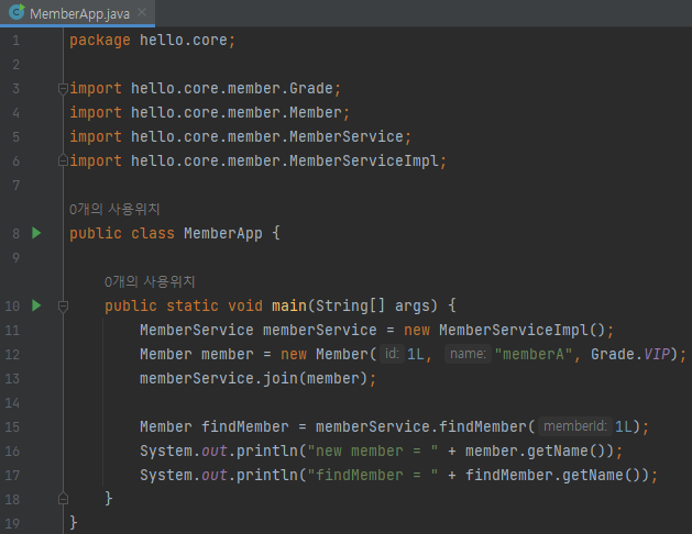 main/java/hello.core/member/MemoryMemberRepository 생성
