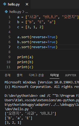 리스트 sort