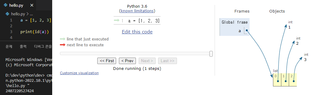 3. 변수 a의 리스트값을 변경한다.